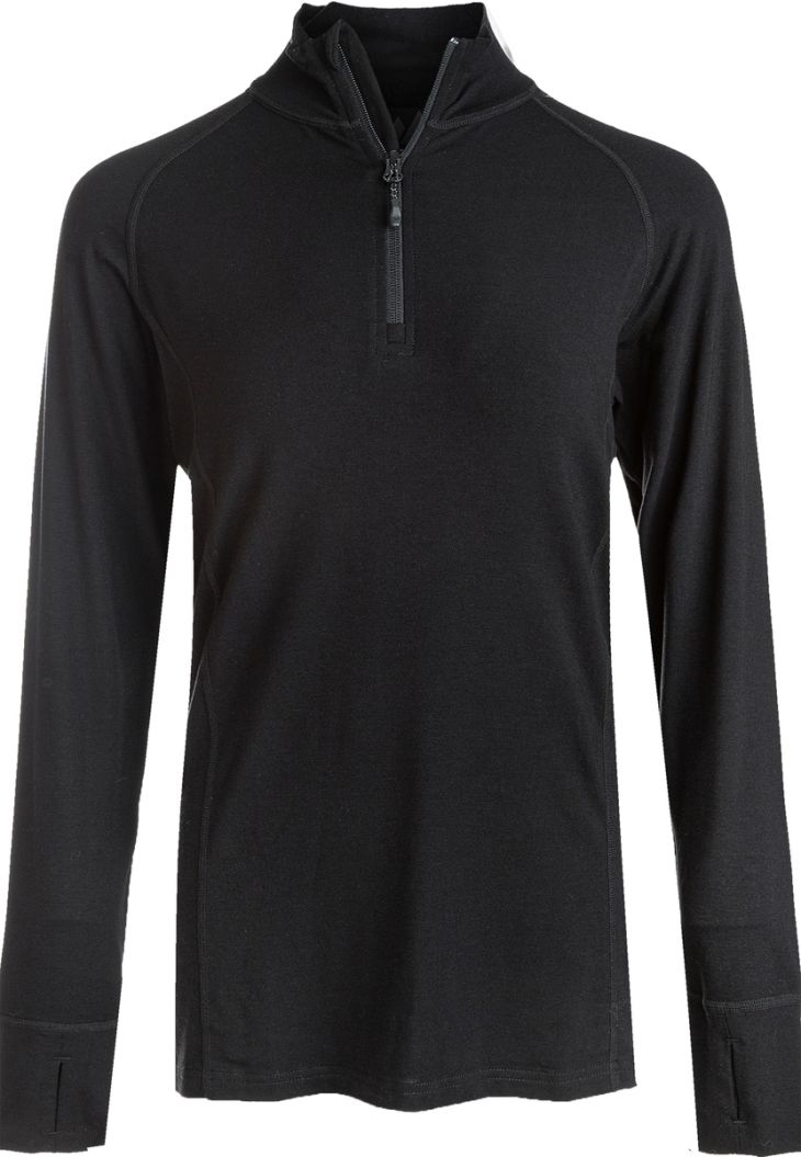 You can get excellent ski underwear with the Athene base layer top from Whistler. The functional shirt is an ideal choice for skiing or other winter sports as well as other outdoor activities. It comes in a timeless plain color. An additional plus point is the high breathability, which is guaranteed by a wool content of 28%, among other things. Practical thumb holes on the cuffs keep hands and wrists pleasantly warm.
