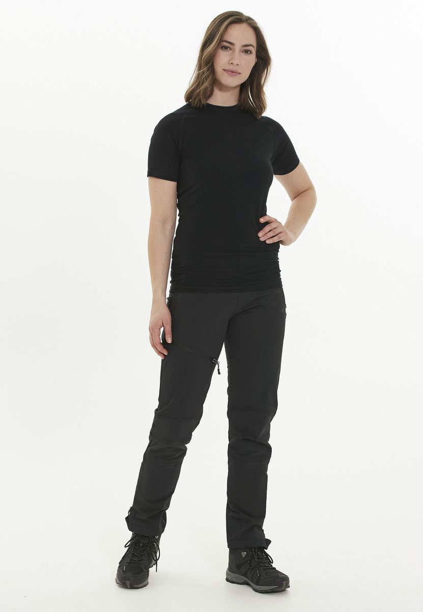 Athene is a high-quality T-shirt from WHISTLER. It is suitable for women and is an ideal product for urban outdoor or for running & walking. Its appearance is determined by its simple plain color. The material is bamboo viscose, wool and elastane.