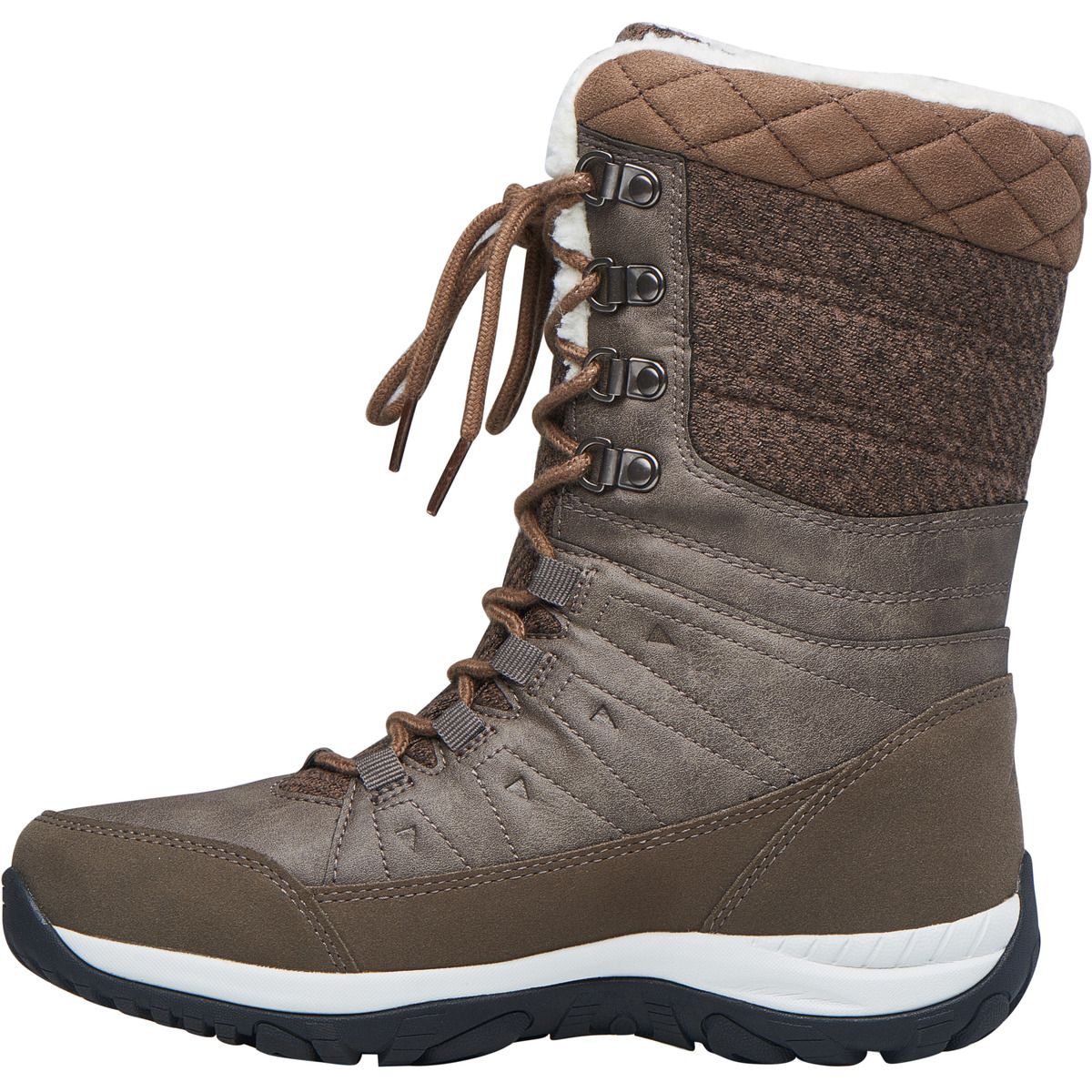 Comfortable in a sporty look through the cold season! The sporty, fashionable "Bakan" Waterproof winter boots for women by MOLS are the perfect companion for cold, wet winter days. The inner lining made of cuddly soft polyester has a warming effect - the boots ensure pleasantly warm feet at temperatures of up to -10°C. The waterproof PU and textile upper keeps your feet dry. Cold, wet feet are a thing of the past with these boots. The chic design in partly leather and felt look ensures a high-quality appearance. The full-length lacing gives you a very good hold and can be adjusted as desired. The robust outsole ensures optimal grip on all surfaces. The shoe is also equipped with a removable insole.