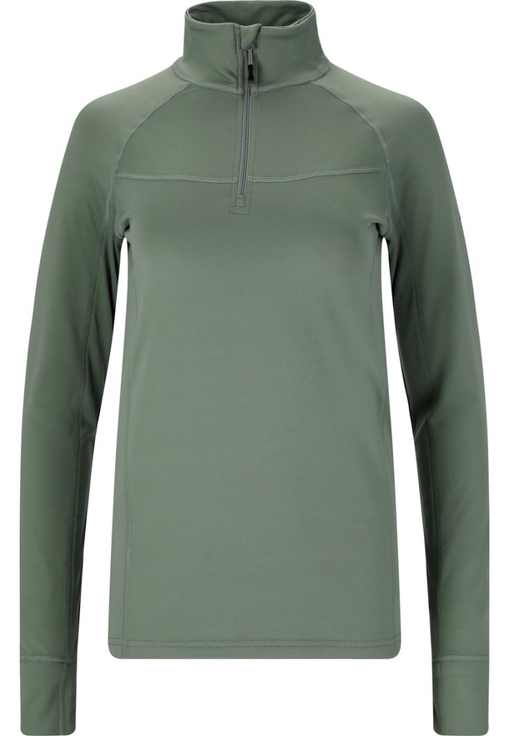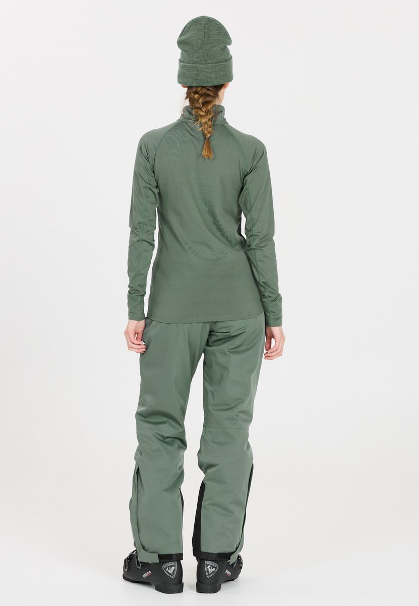 Whether you're skiing downhill or cross-country, this ski sweater from Whistler looks good everywhere. It has a comfortable stand-up collar that keeps your neck warm, but can also be worn open in warmer temperatures thanks to the zipper. It also has a comfortable fit and hugs the body perfectly. It's perfect for simply putting on underneath, but can also be worn on its own. A small brand logo on the arm adds a sporty touch and skilfully rounds off the model.