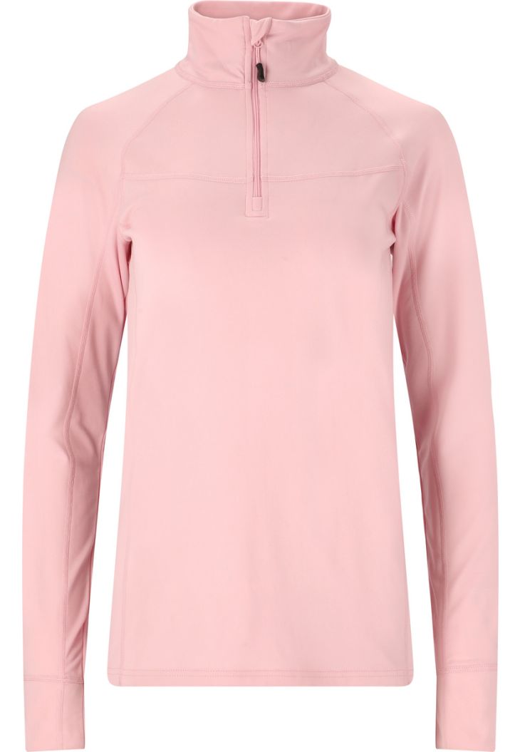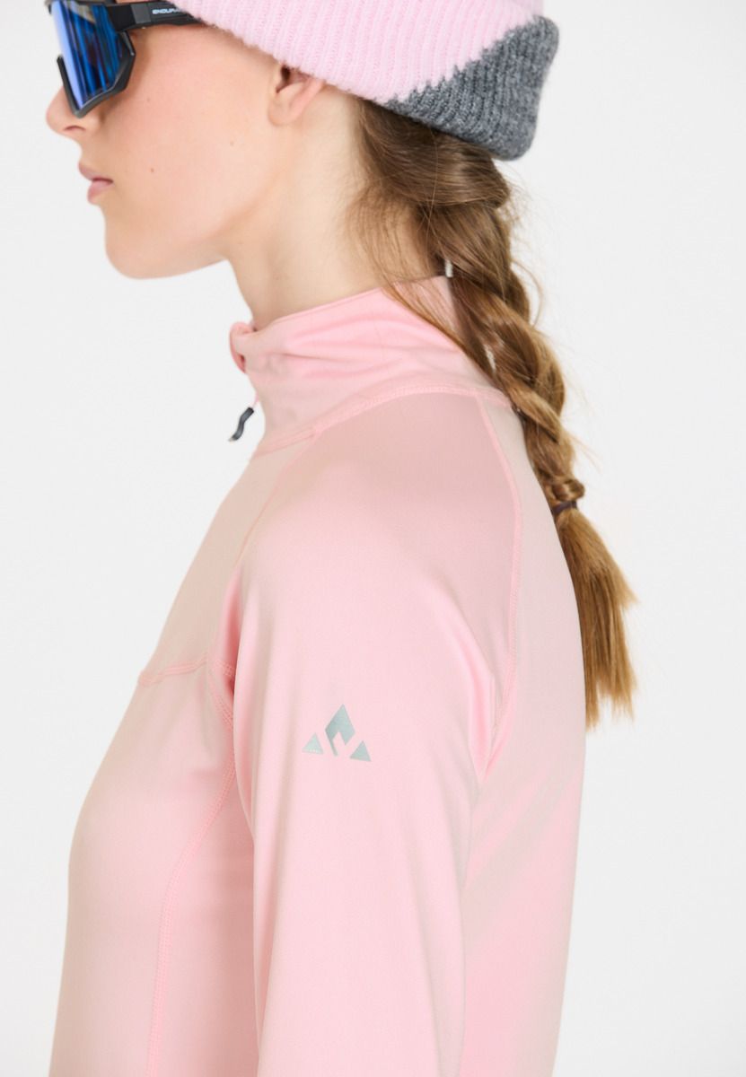 Whether you're skiing downhill or cross-country, this ski sweater from Whistler looks good everywhere. It has a comfortable stand-up collar that keeps your neck warm, but can also be worn open in warmer temperatures thanks to the zipper. It also has a comfortable fit and hugs the body perfectly. It's perfect for simply putting on underneath, but can also be worn on its own. A small brand logo on the arm adds a sporty touch and skilfully rounds off the model.