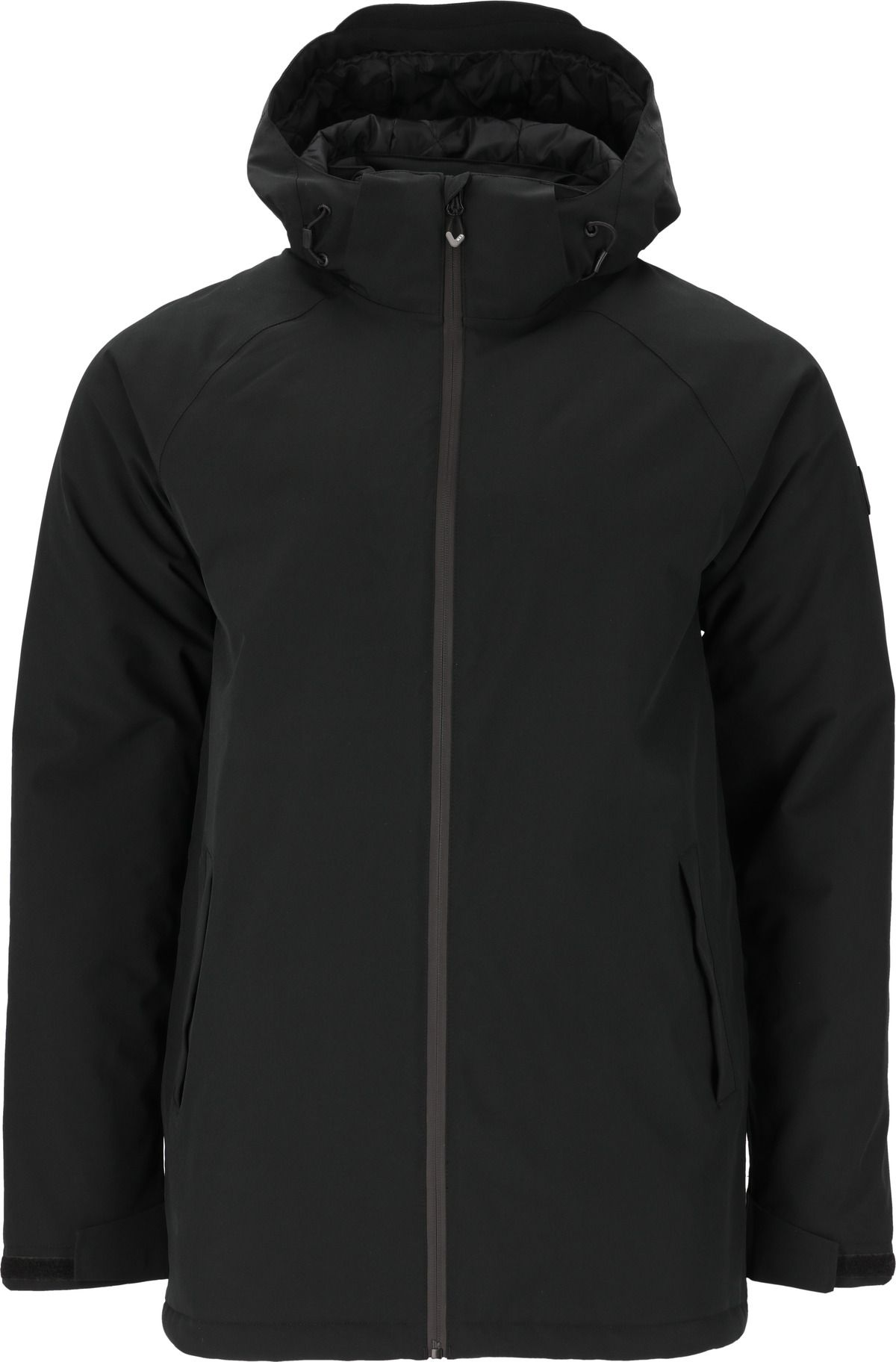 - Hood with drawstring