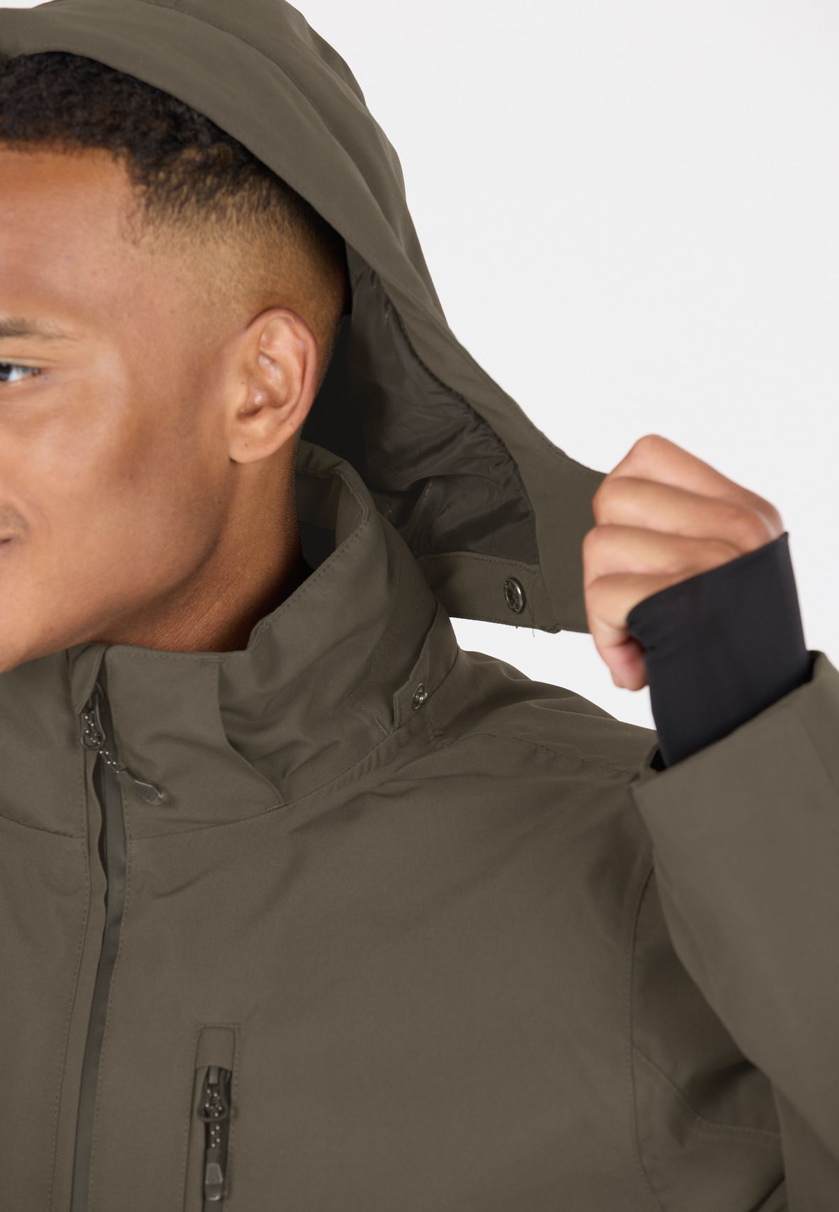 - Hood with drawstring