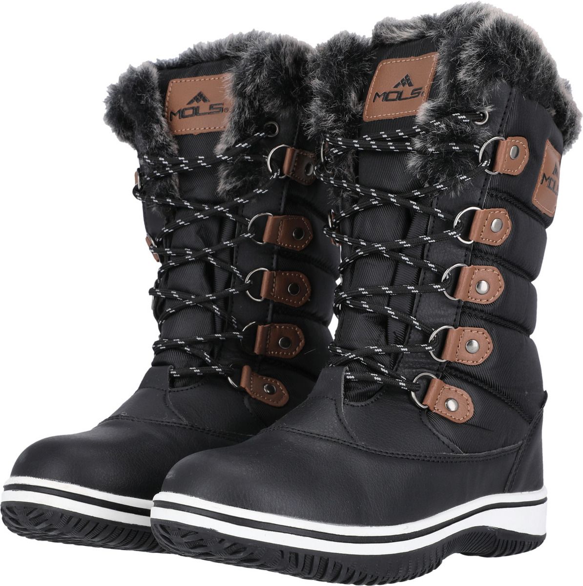 Comfortable through the winter! The sporty, fashionable and waterproof "Enfield" winter boots for women by MOLS are the perfect companion for cold, wet winter days. The inner lining made of cuddly soft polyester warms the feet, while the synthetic fur collar adds a fashionable look. The boots ensure pleasantly warm feet at temperatures as low as -10°C. The waterproof PU and nylon upper also keeps your feet dry - cold, wet feet are a thing of the past with these boots. The full-length lacing looks very stylish and feminine. It gives you very good support and can be adjusted as desired. The robust outsole ensures optimal grip on all surfaces. The shoe is also equipped with a removable insole.