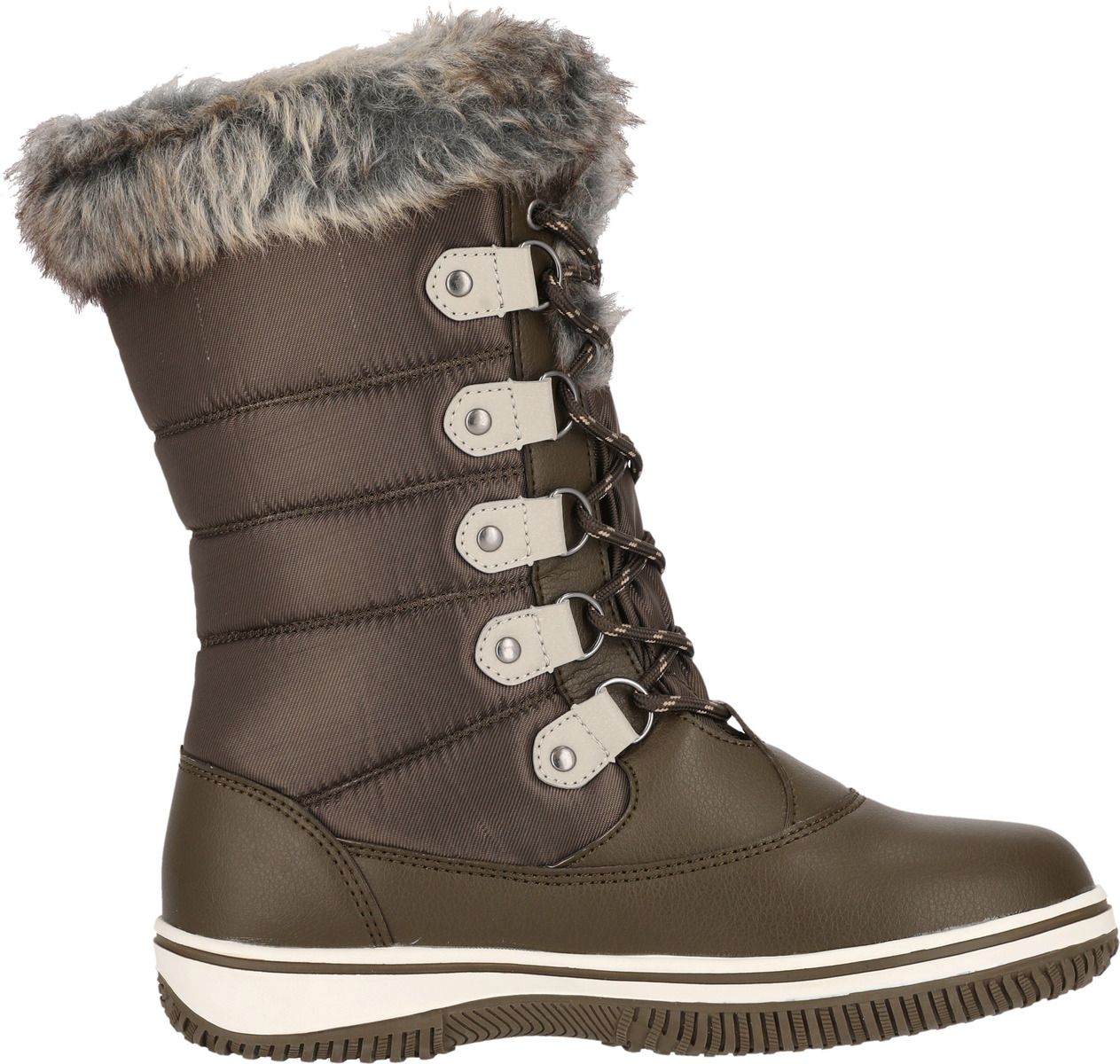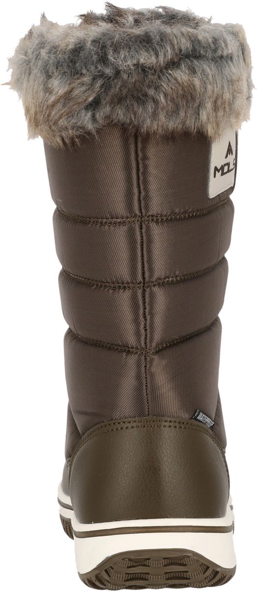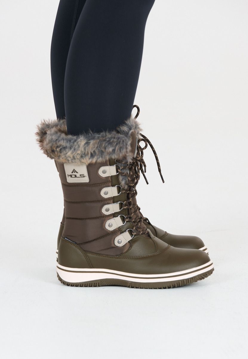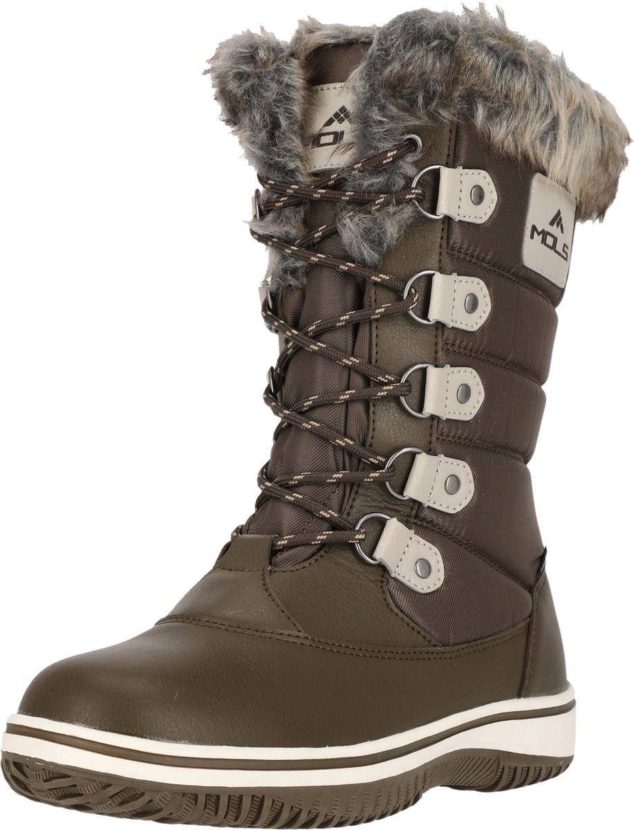 Comfortable through the winter! The sporty, fashionable and waterproof "Enfield" winter boots for women by MOLS are the perfect companion for cold, wet winter days. The inner lining made of cuddly soft polyester warms the feet, while the synthetic fur collar adds a fashionable look. The boots ensure pleasantly warm feet at temperatures as low as -10°C. The waterproof PU and nylon upper also keeps your feet dry - cold, wet feet are a thing of the past with these boots. The full-length lacing looks very stylish and feminine. It gives you very good support and can be adjusted as desired. The robust outsole ensures optimal grip on all surfaces. The shoe is also equipped with a removable insole.
