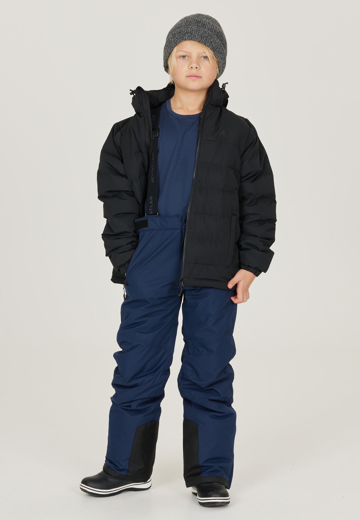 The FAIRFAX ski pants for children from WHISTLER come with suspenders and the tried and tested W-Pro 10,000 mm membrane for very high waterproofness, windproofness and breathability. They also have removable suspenders. The waistband can be adjusted in width. The seams are specially welded so that no water can get in. The built-in snow guard keeps feet nice and dry at all times. The lift ticket can be stored in either the left or right zipped front pocket. The ski pants are extra thickly padded and keep you nice and warm even in very low temperatures.