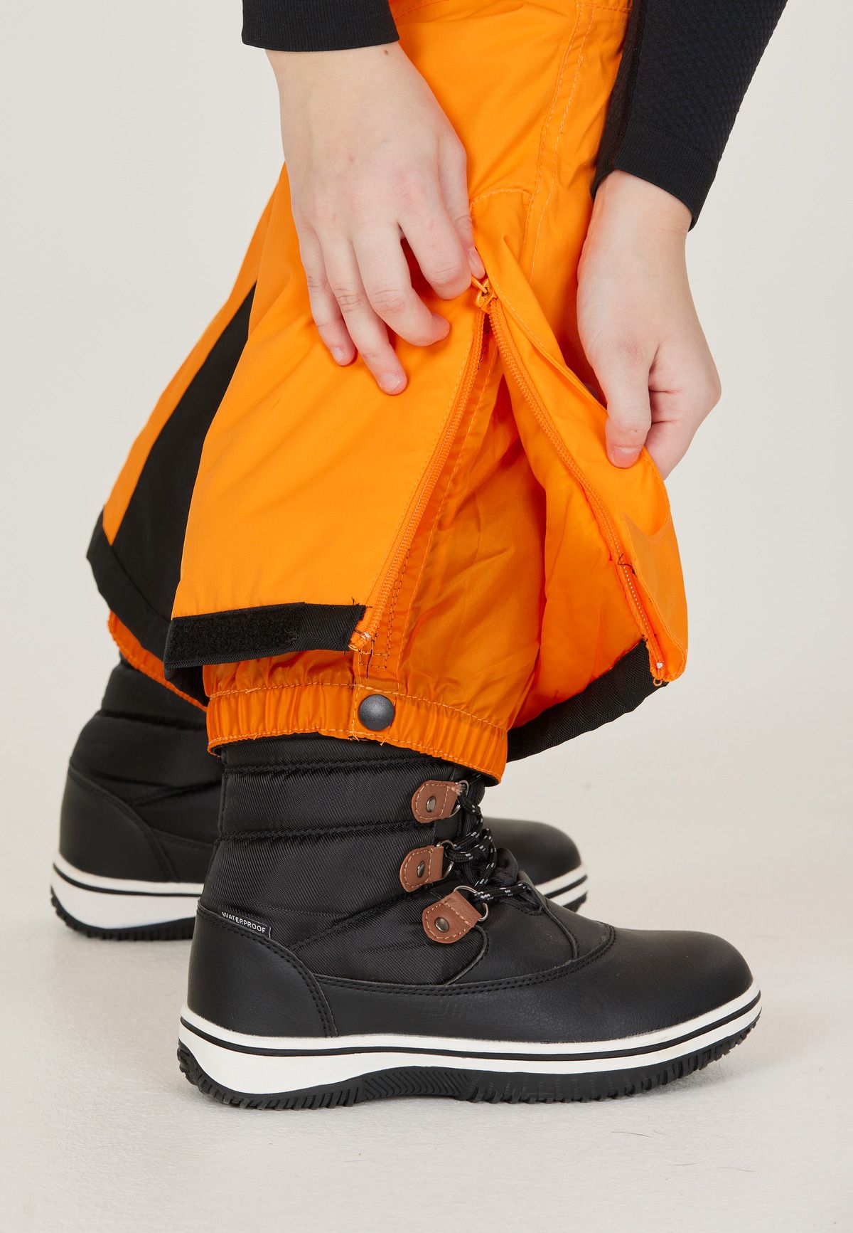 The FAIRFAX ski pants for children from WHISTLER come with suspenders and the tried and tested W-Pro 10,000 mm membrane for very high waterproofness, windproofness and breathability. They also have removable suspenders. The waistband can be adjusted in width. The seams are specially welded so that no water can get in. The built-in snow guard keeps feet nice and dry at all times. The lift ticket can be stored in either the left or right zipped front pocket. The ski pants are extra thickly padded and keep you nice and warm even in very low temperatures.