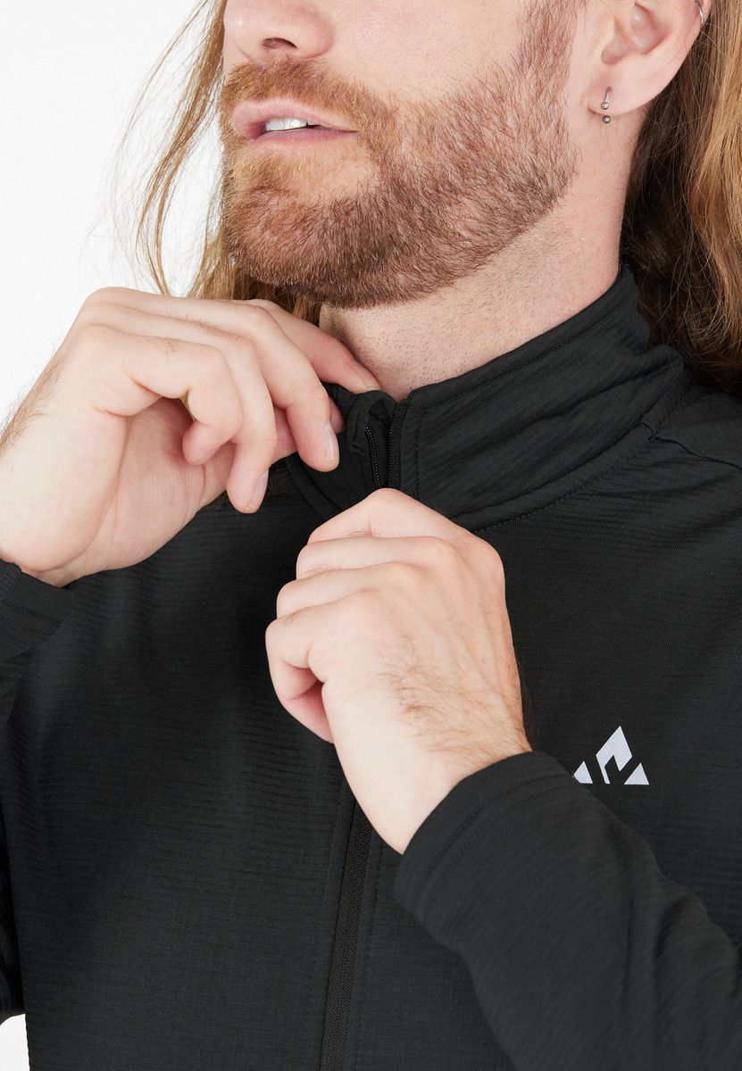 Put on and take off in no time and with moisture-regulating quality, the "Kalle" waffle midlayer for men will quickly become your favorite functional top. Breathable, warm and comfortable, made from 92% polyester and 8% elastane in a smart waffle design, it ensures optimal comfort all day long. The midlayer is completed by a full-length zip strip and a subtle logo design.