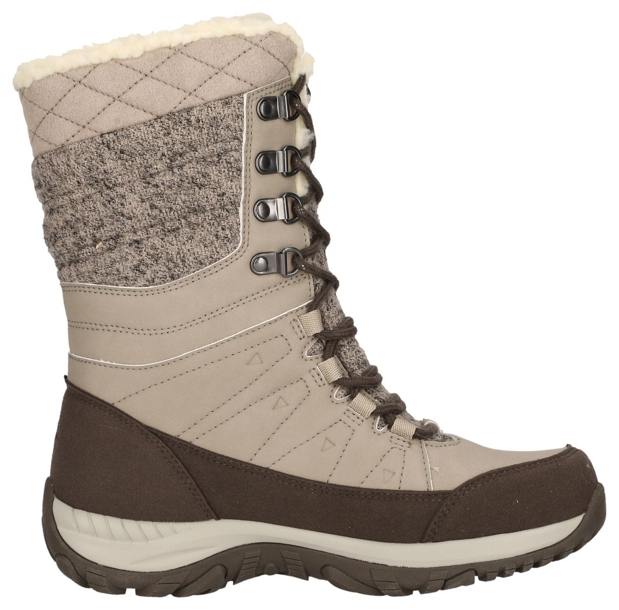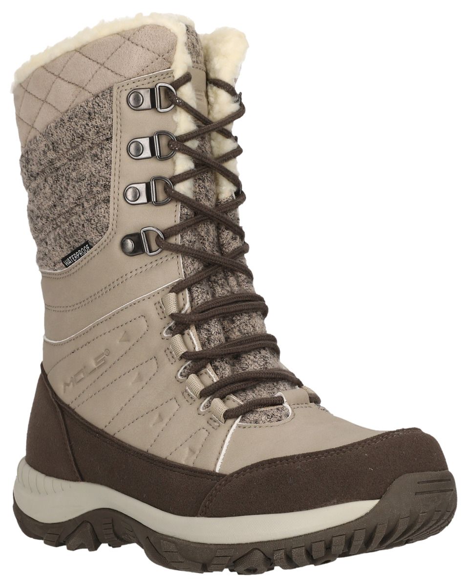 Comfortable in a sporty look through the cold season! The sporty, fashionable "Bakan" Waterproof winter boots for women by MOLS are the perfect companion for cold, wet winter days. The inner lining made of cuddly soft polyester has a warming effect - the boots ensure pleasantly warm feet at temperatures of up to -10°C. The waterproof PU and textile upper keeps your feet dry. Cold, wet feet are a thing of the past with these boots. The chic design in partly leather and felt look ensures a high-quality appearance. The full-length lacing gives you a very good hold and can be adjusted as desired. The robust outsole ensures optimal grip on all surfaces. The shoe is also equipped with a removable insole.