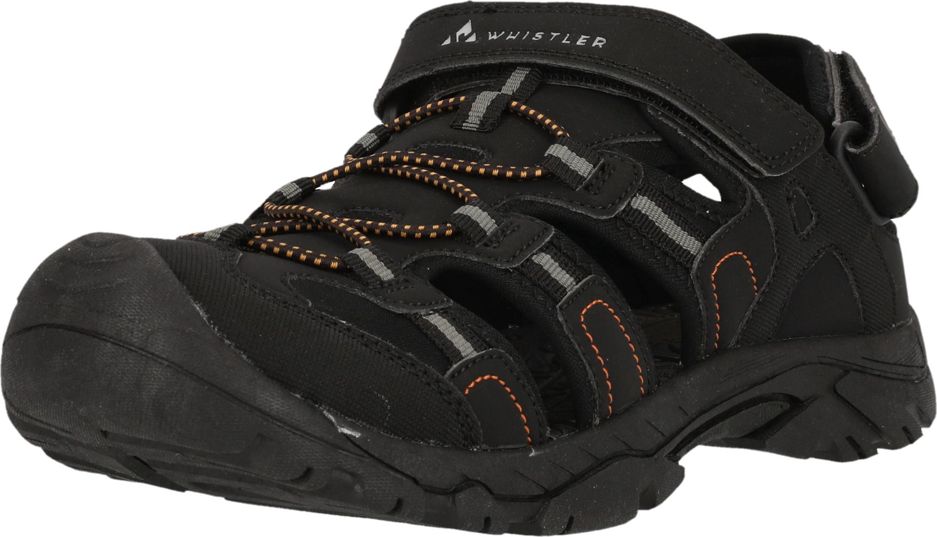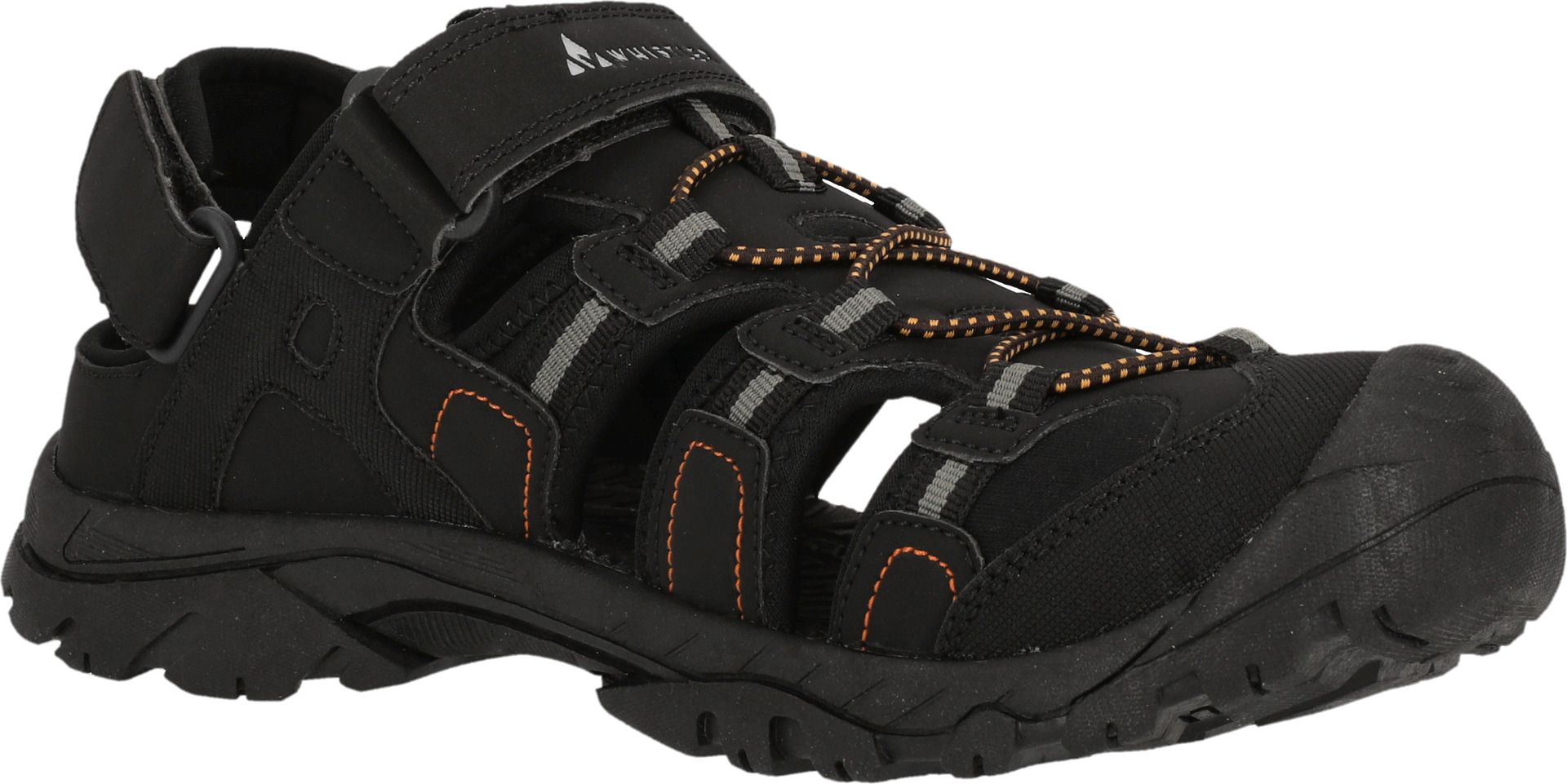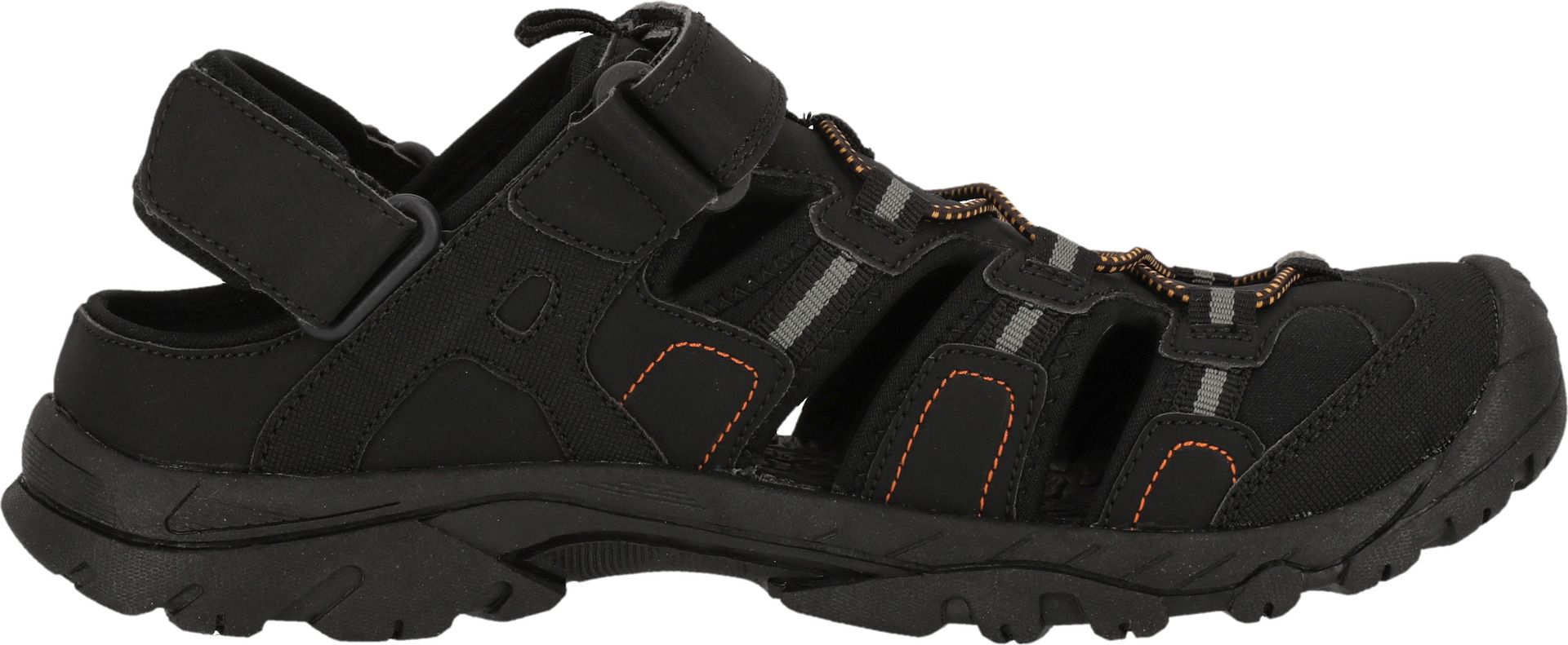 Want to keep your feet fresh and still protect them on active days? That's no problem with the "Macareus M Closed Sandal"! The sandal for men has a closed toe section and a comfortable fit. The upper material is made of PU and textile and the sole is made of TPR. This makes the shoe breathable and robust - perfect for outdoor trips. The shoe can be opened, closed and adjusted at the instep using a Velcro fastener. The extra padded heel section ensures a lot of comfort.