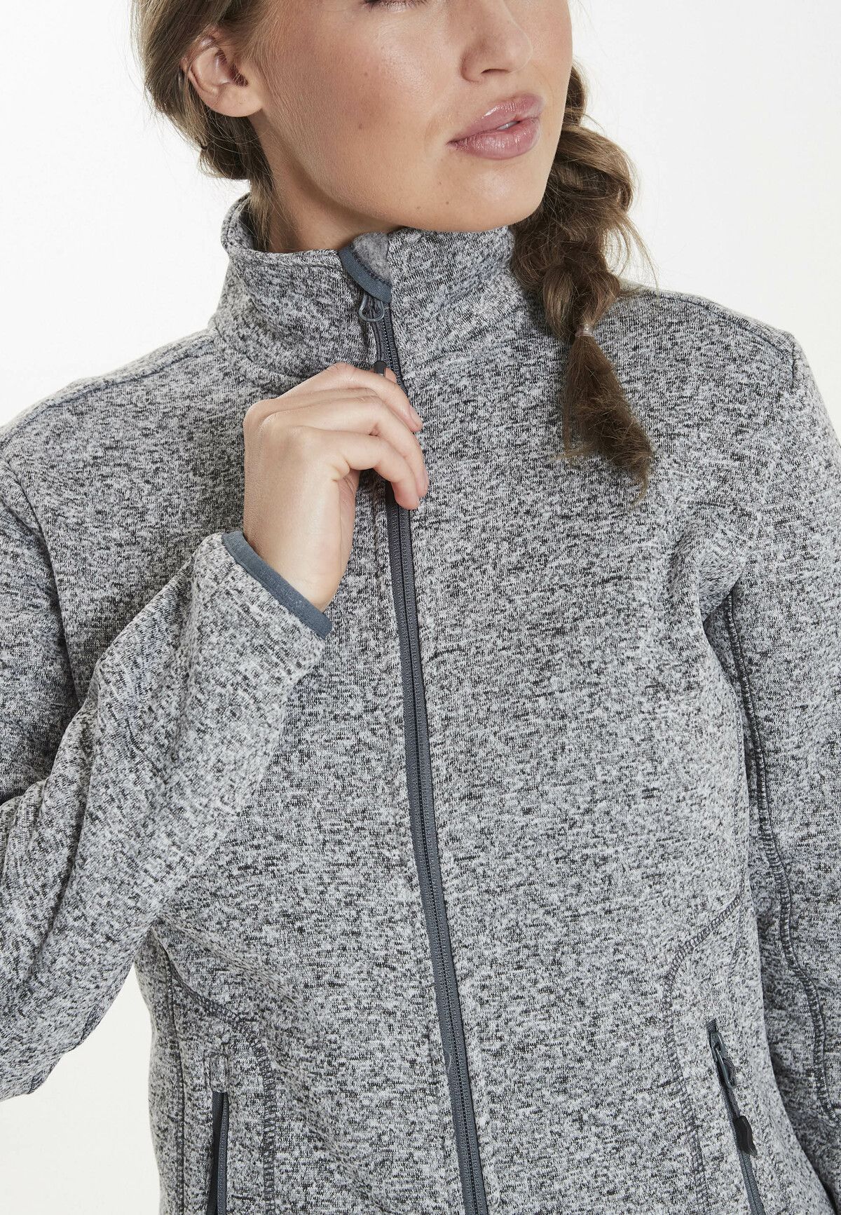 The SAMANI W Melange fleece jacket for women by WHISTLER from Denmark is versatile for sport and everyday use. The understated and sporty design from Scandinavia can be combined quickly and in many different ways. The slightly warm fleece made of mottled polyester is breathable and quick-drying. The high stand-up collar provides pleasant protection from wind and drafts. Fine cuffs on the sleeves and hips, side zip pockets and a durable full-length zip with chin guard round off the package harmoniously. The sporty SAMANI W Melange fleece jacket by WHISTLER also offers a great price-performance ratio!