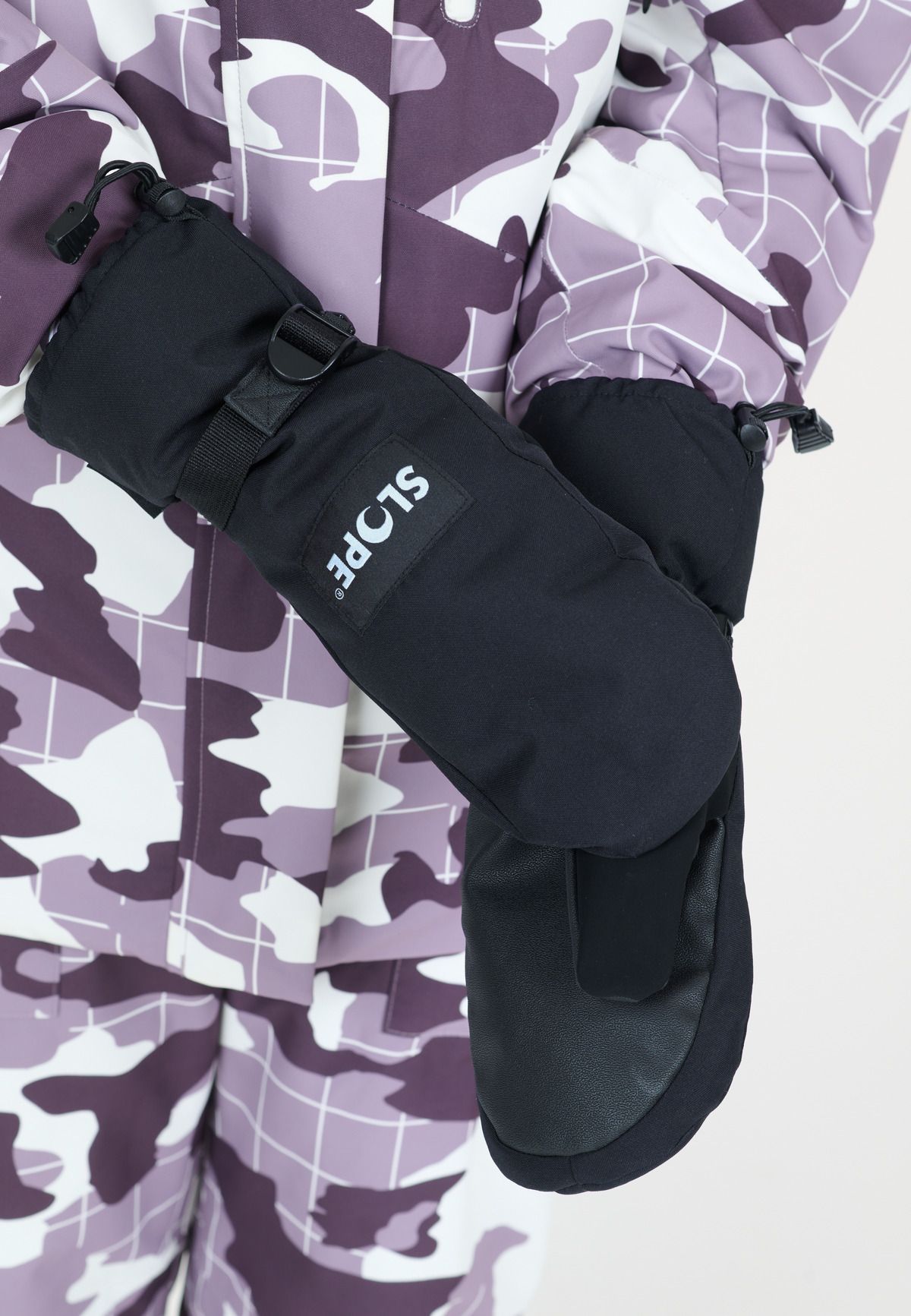 The "Gideon" mittens from SLOPE are the perfect equipment for your adventures in the snow. They are waterproof and made from a combination of functional materials that keep your hands pleasantly warm and dry. They also have a water-repellent coating. The outer material on the back of the hand is made from 100% Oxford polyester and the non-slip palm is made from 50% polyester and 50% polyurethane. The soft fleece lining and polyester padding provide lasting warmth. Smart details such as fastening straps and adjustable wrist areas make these gloves particularly functional companions!
