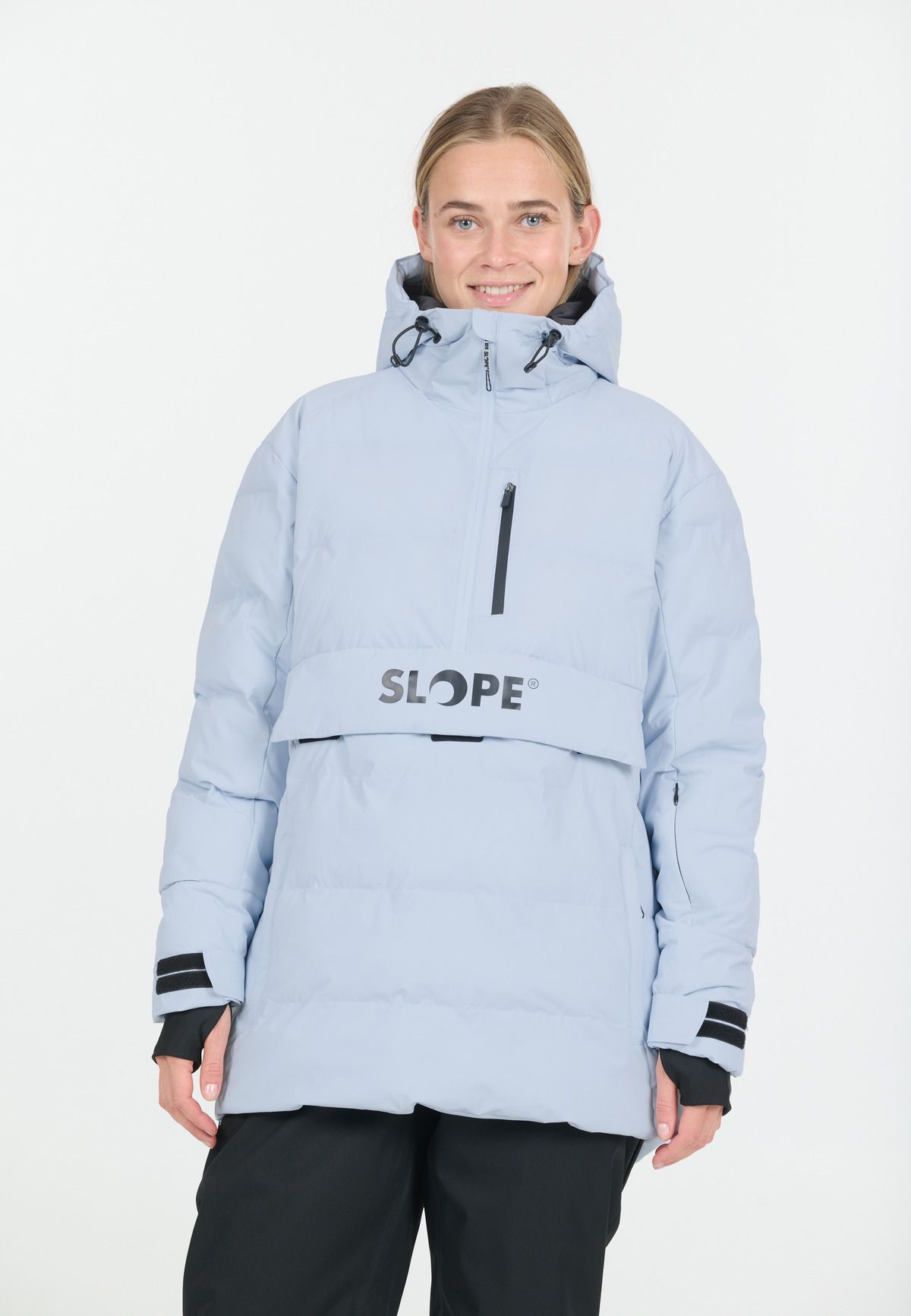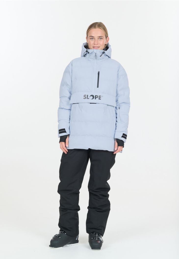 With the "Thumper" anorak from SLOPE, you'll be well equipped for cold winter days – whether on the ski slopes or walking through snowy landscapes. This stylish women's anorak impresses with its well-thought-out functionality: a water-repellent membrane, 10,000 mm water column, and fully taped seams reliably protect you from moisture, while the windproof material and warm insulation ensure comfortable wear. The practical half-zip with high-quality YKK zipper makes it easy to put on, while the integrated snow skirt and protective hood keep you safe even in heavy snowfall. "Thumper" offers you the perfect combination of function, warmth, and urban style – ideal for active days in winter.