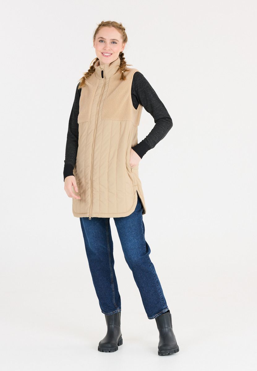 The "Vetlanda" teddy quilted vest is an absolute must-have for women: In a warm quilted design with teddy elements, it protects you from the wind and looks great too. It is made of 100% polyester. With a normal, long cut and various pockets, it is uncomplicated and offers storage space for your essentials. The YKK main zipper ensures durability and functionality. With "Vetlanda" from Weather Report, you can complement any outfit with style, function and cuddly factor!