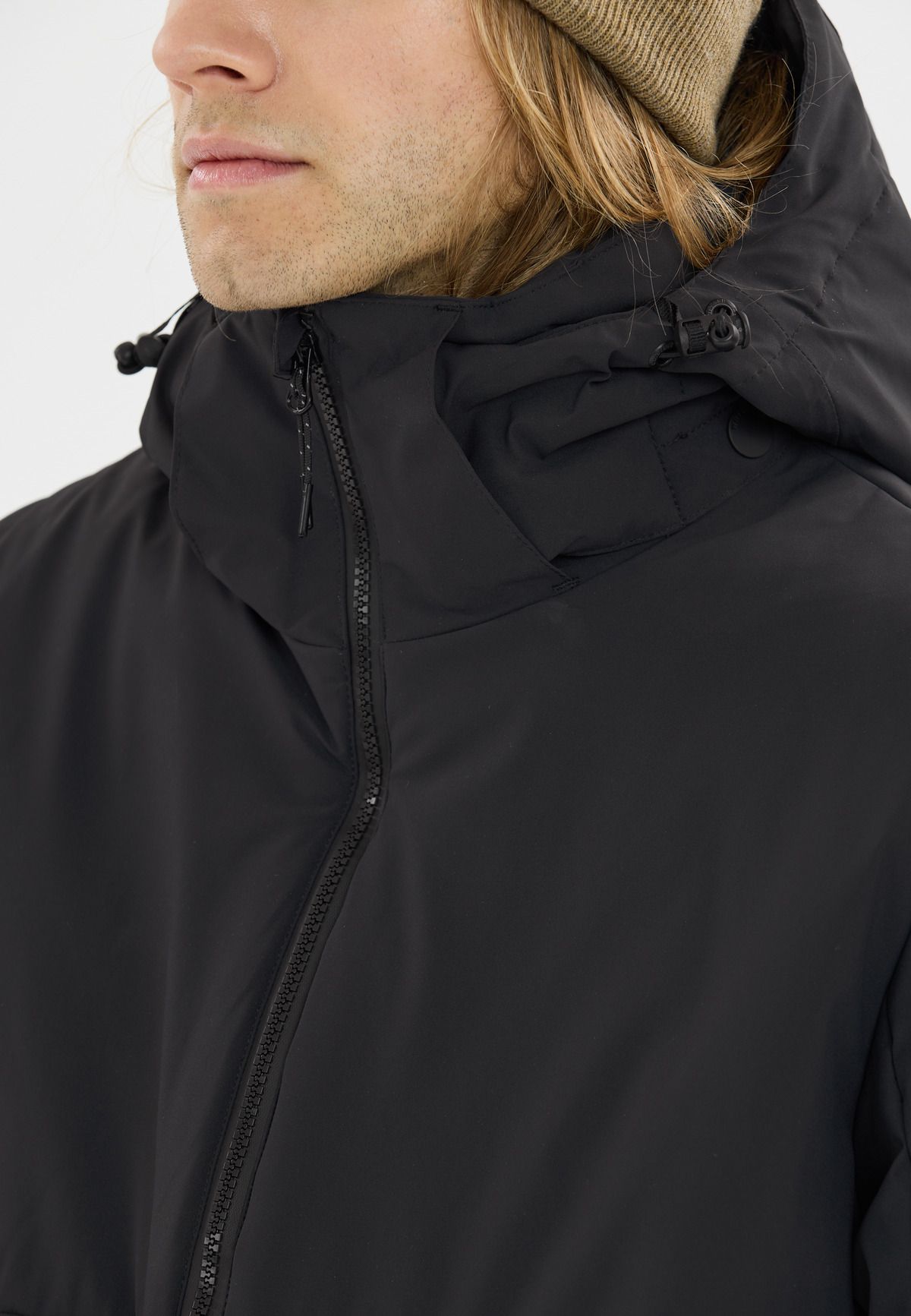 - Hood with drawstring