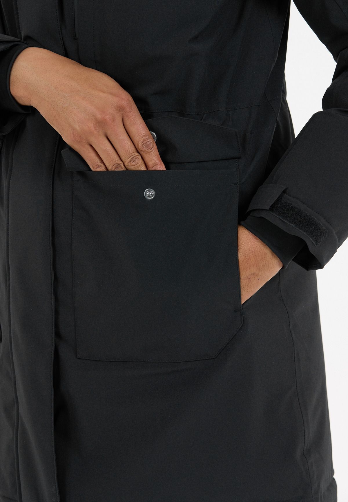 "There is no such thing as bad weather, just the wrong clothing" is the motto of the "Bluff" parka for women! Discover this smart coat and defy the weather. Made from 92% polyester and 8% elastane with a nylon inner lining and a lining made of 100% polyester, it offers optimal comfort, warmth, breathability and freedom of movement. With a water-repellent zipper and waterproof membrane, it reliably protects you from wind and weather. It also has taped seams and can withstand a total of 10,000 mm water column. "Bluff" has numerous pockets: chest pockets with zippers, flap pockets and inside pockets offer enough storage space for your valuables. The YKK main zipper ensures durability and easy opening and closing. Thanks to adjustable elements on the hood and sleeve ends, you can perfect the fit and seal the jacket even further. With "Bluff" you are ready for every active day!