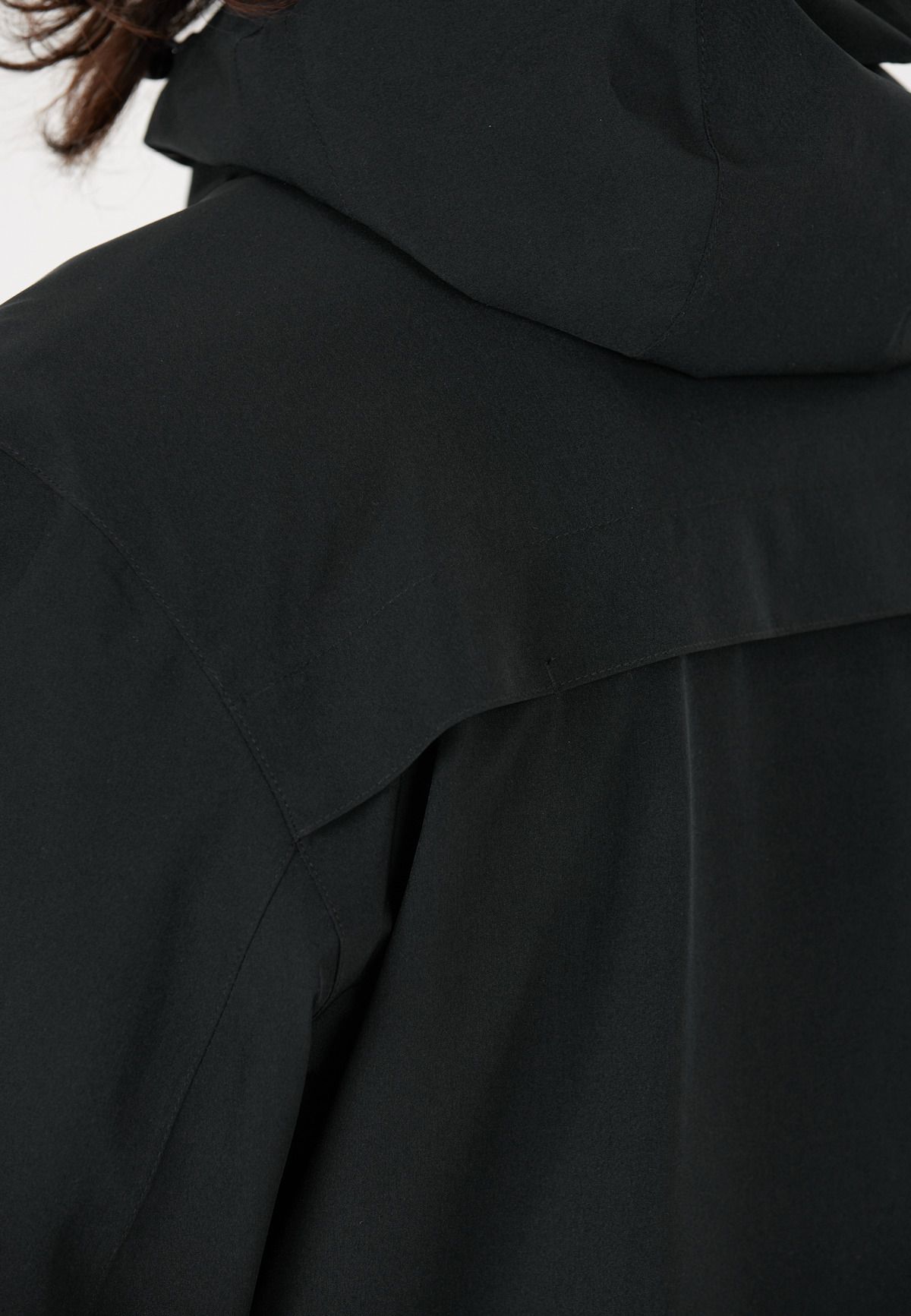 - Hood with drawstring