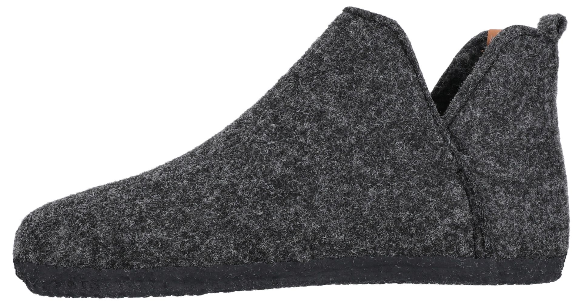 The "Yorba" unisex felt shoe invites you to relax in comfort - whether at home, in the mountain hut, visiting friends or wherever you are! It keeps your feet warm and is breathable at the same time, so that a pleasant foot climate is guaranteed. The slipper is designed without a fastener and is therefore super easy to put on and take off. The padded heel section ensures additional comfort with every step.