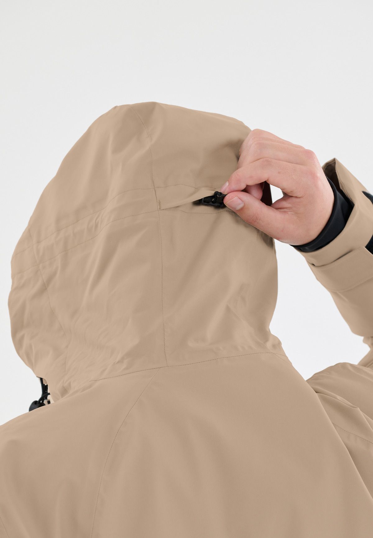 - Hood with drawstring